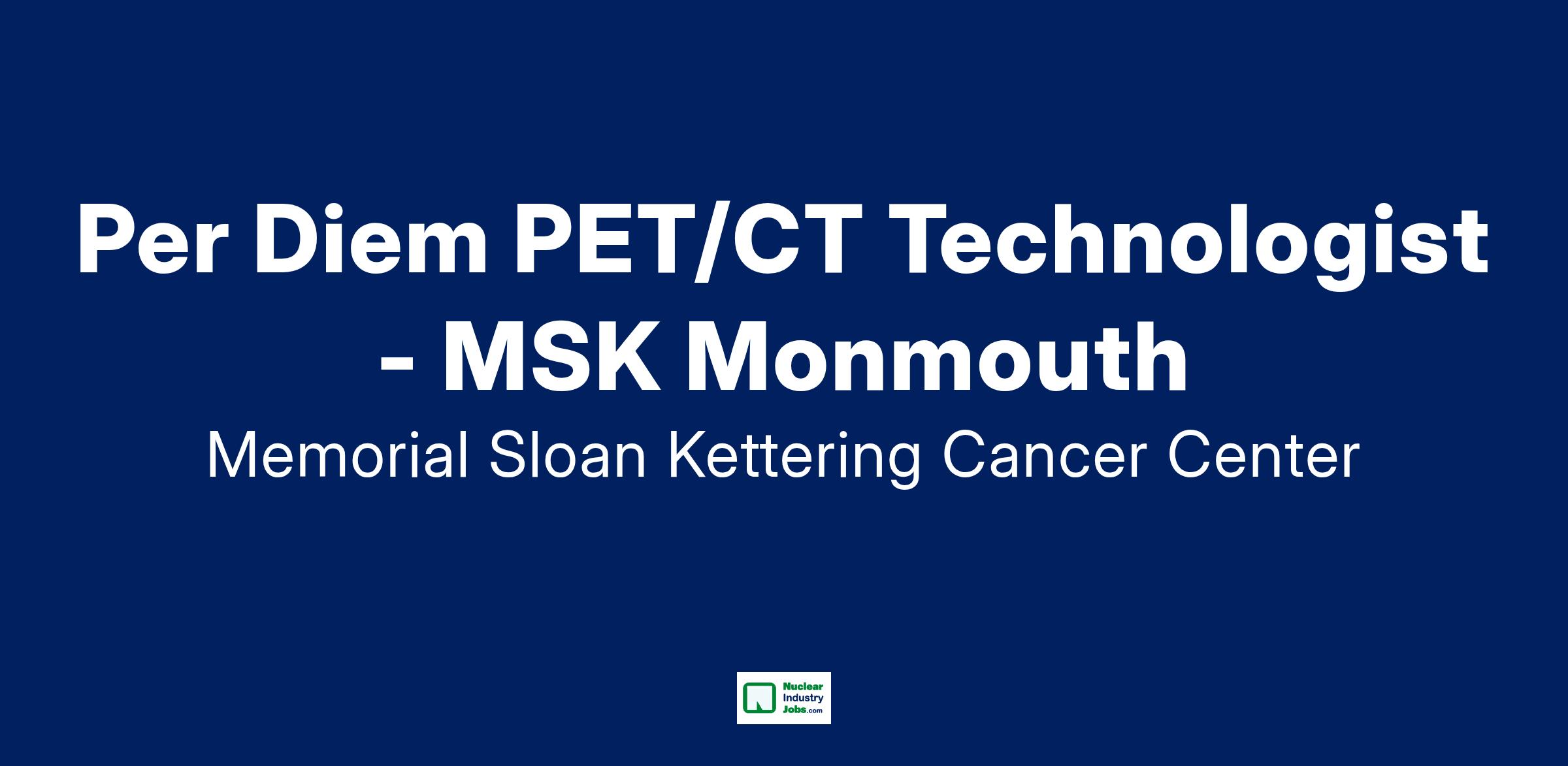 Job Description:Per Diem PET/CT Technologist - MSK Monmouth
