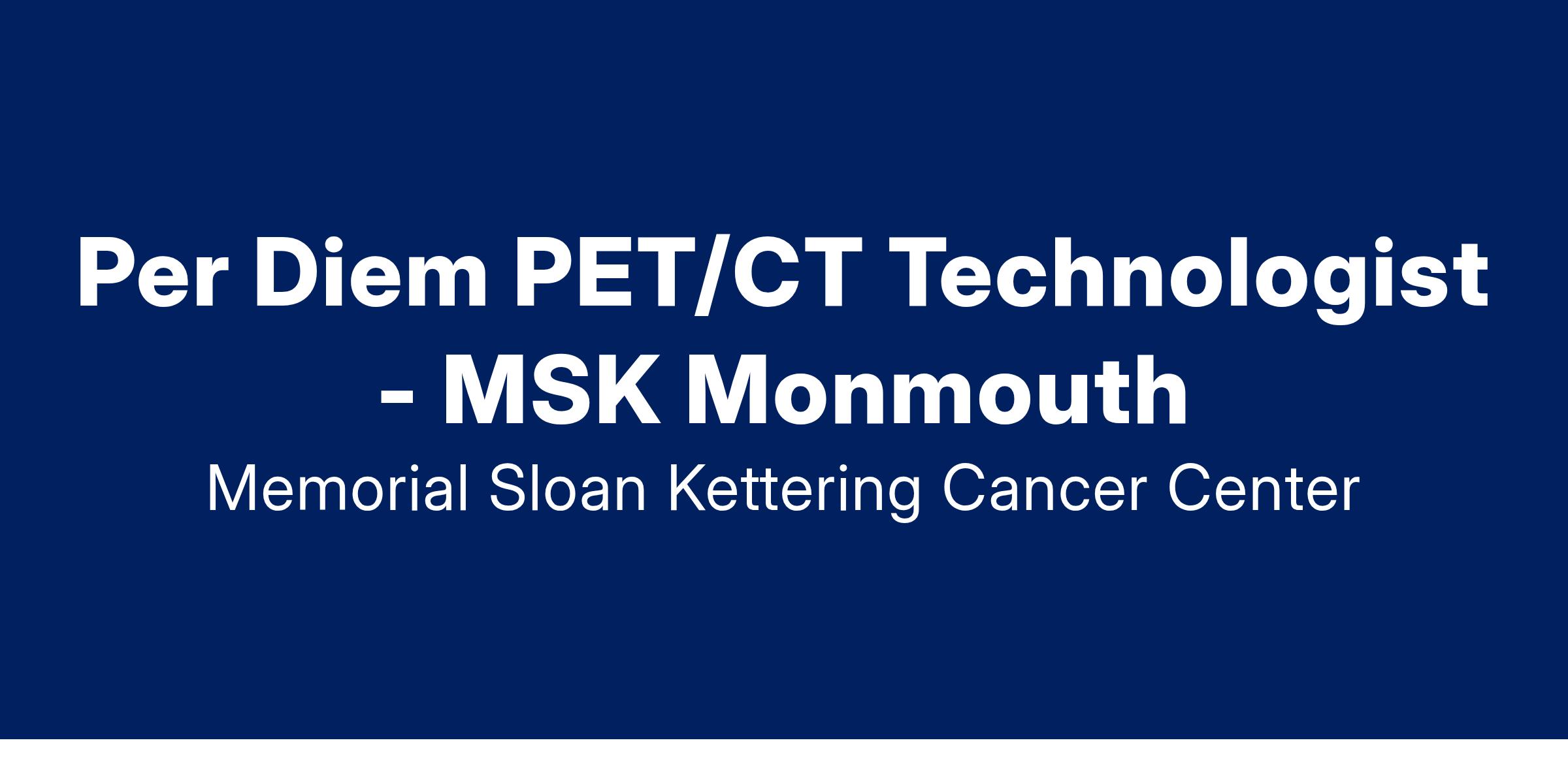 Job Description:Per Diem PET/CT Technologist - MSK Monmouth