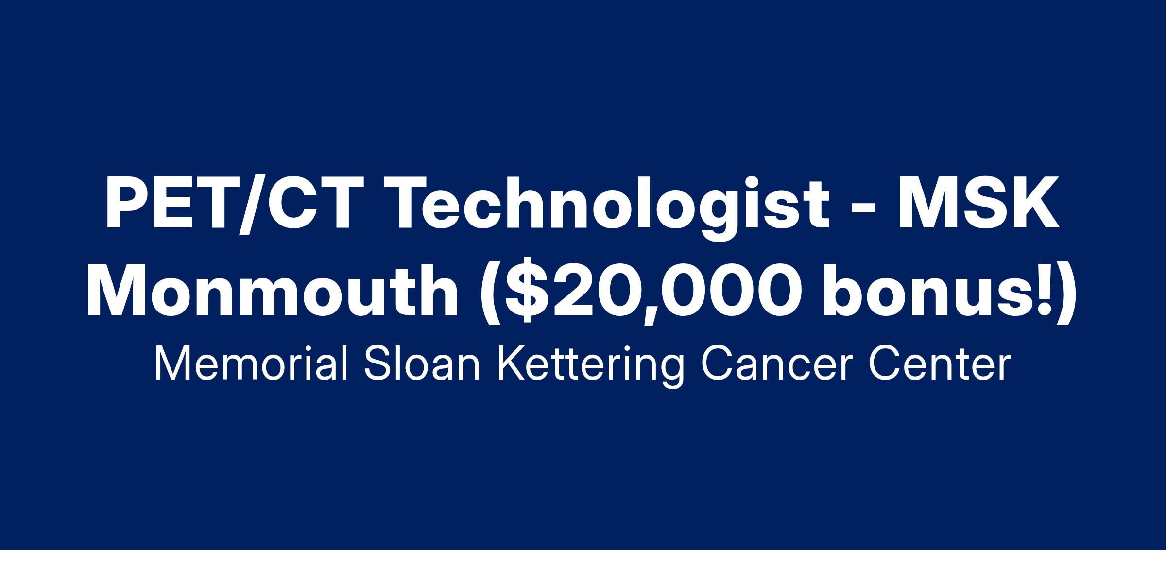 $20,000 bonus available for new PET/CT Tech hires at MSK Monmouth!