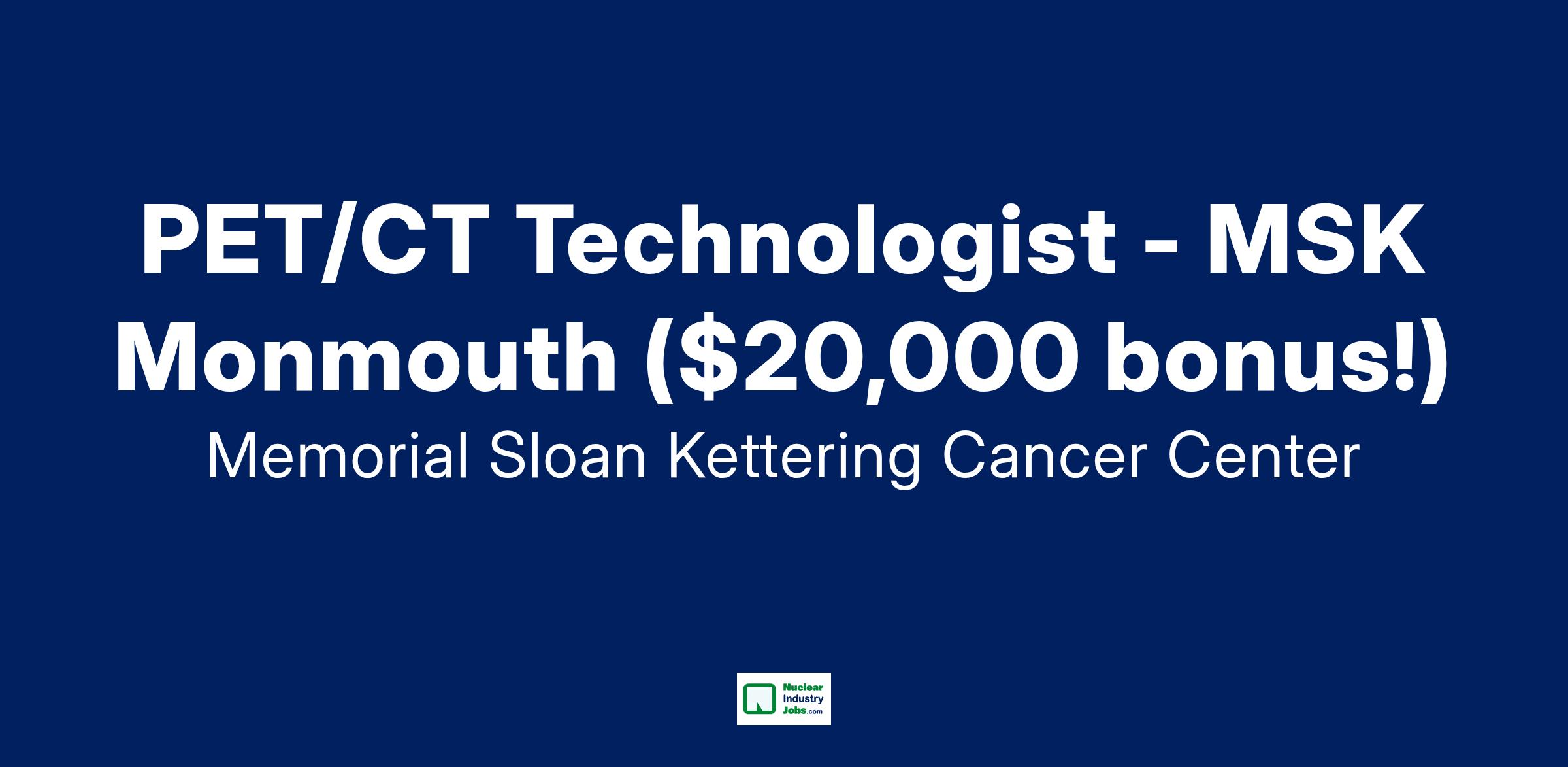 $20,000 bonus available for new PET/CT Tech hires at MSK Monmouth!