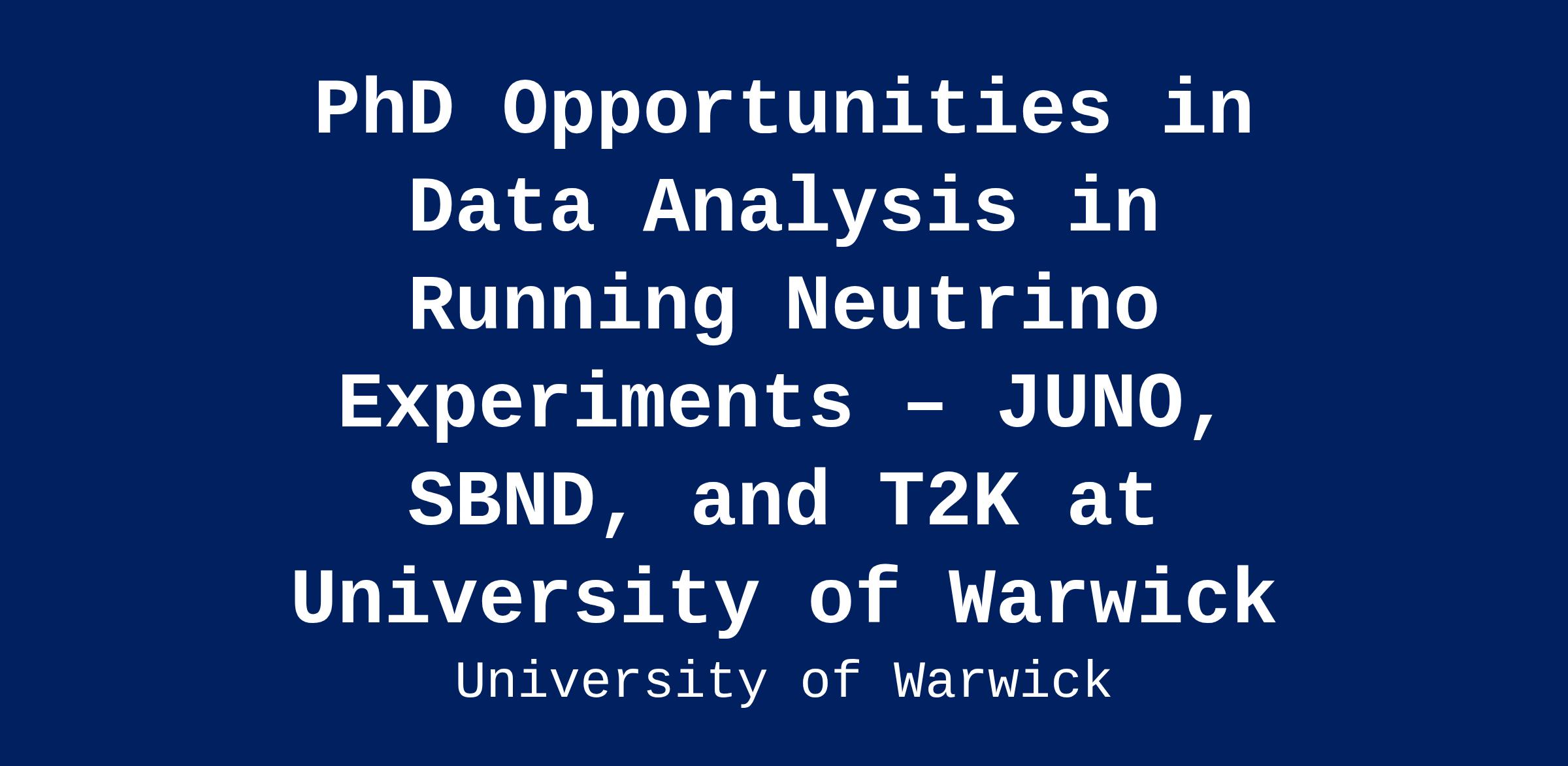 The successful candidates will join the Elementary Particle Physics (EPP) group at Warwick, one of the UK’s most active university groups in neutrino physics and precision measurements. Warwick is active across a host of international neutrino projects including DUNE, Hyper-K, JUNO, SBN, Super-K, T2K, ultra-low background projects for dark matter and neutrinoless double-beta searches and accelerator muon experiments. With a vibrant community of postgraduates and postdocs, and strong technical support through modern detector development and electronics labs. Particle physics is a strategic priority at Warwick, backed by institutional support and embedded in national and international collaborations.