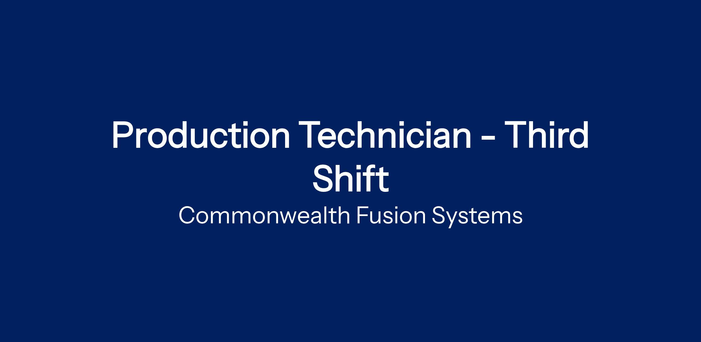 The production technician is an integral part of the CFS team performing and monitoring the manufacturing processes required to build and test superconducting magnets. You will have the opportunity to work within a fast-paced, exciting atmosphere to help the team meet the global necessity for clean energy. Ensures functional operation and preventative maintenance of  equipment and continuous improvement. Responsibilities include close cooperation with Operations, Maintenance, Quality and other departments to ensure goals and objectives are met. This role will lead the way to making Earth sustainable for the future to come.