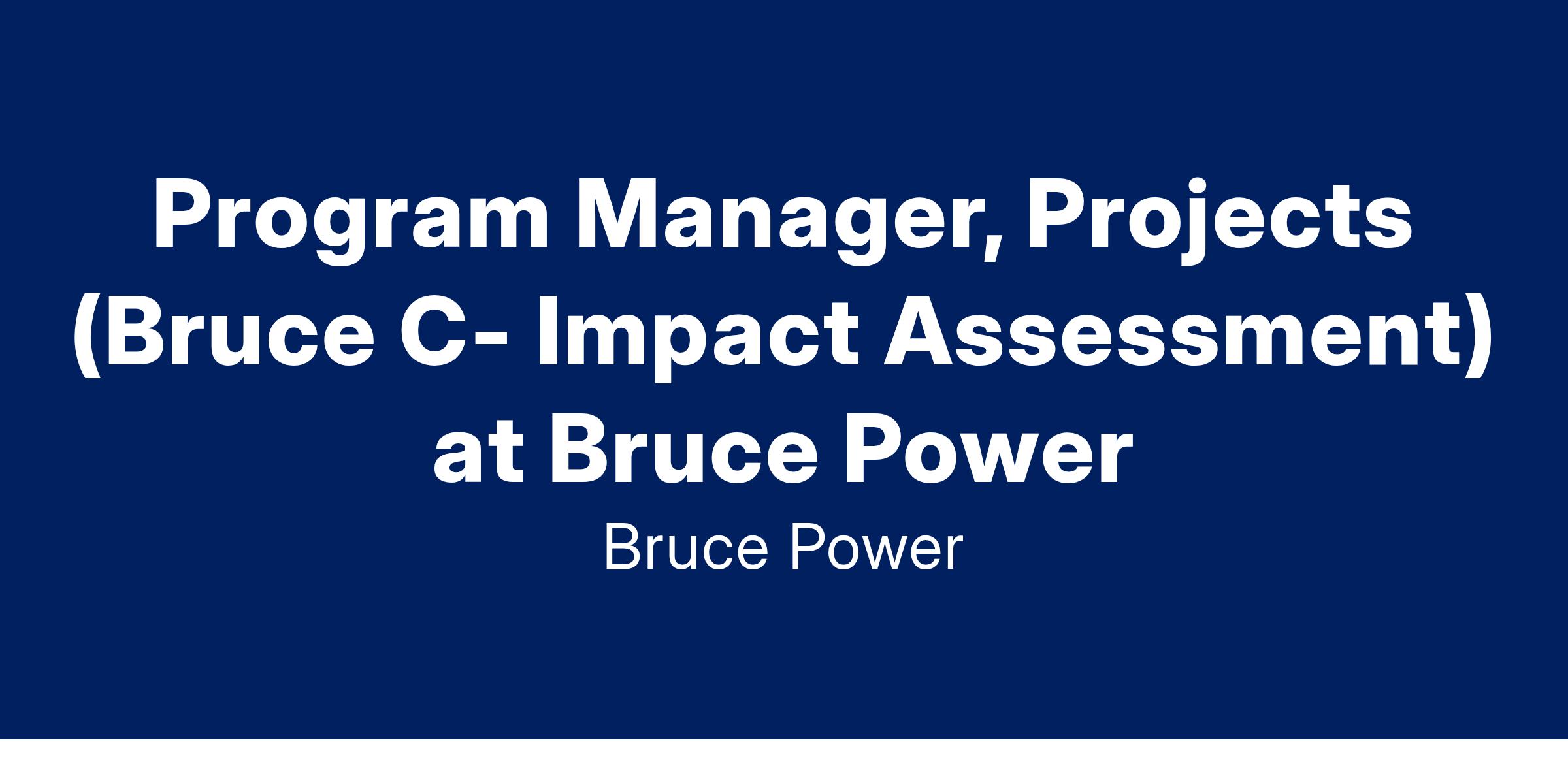 operations, the Regulatory Affairs, Bruce C department is currently hiring for a Program Manager, Projects to support our exciting Bruce C Project (Impact Assessment).