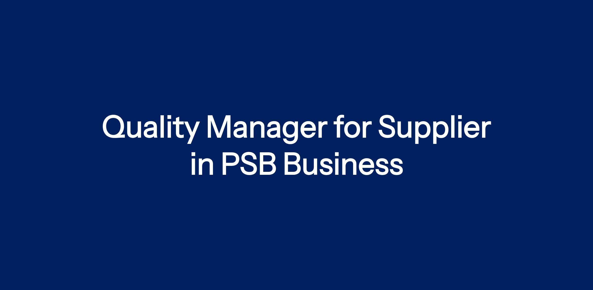 Job Title: Quality Manager for Supplier in PSB Business