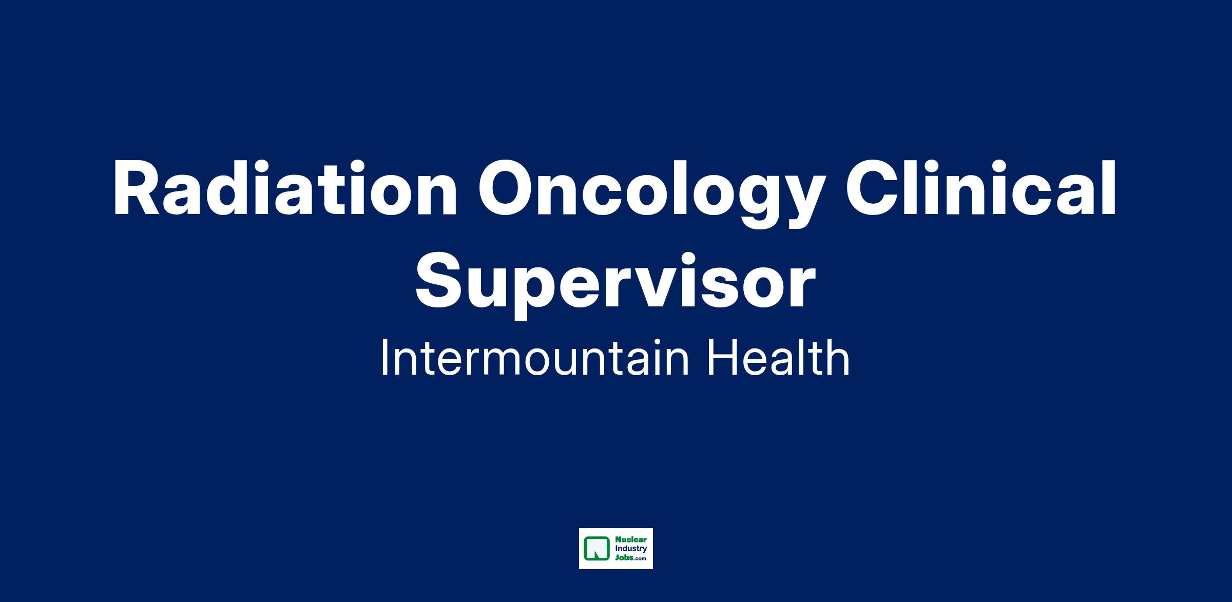 Are you interested in advancing your career while helping people live the healthiest lives possible? As a Radiation Oncology Clinical Supervisor at Intermountain Health, you will play a vital role in supporting our clinical team, ensuring our patients receive the best care. At Intermountain, you will be part of a team that values career advancement, innovation and collaboration, where your skills are valued, and your contributions make a lasting impact.