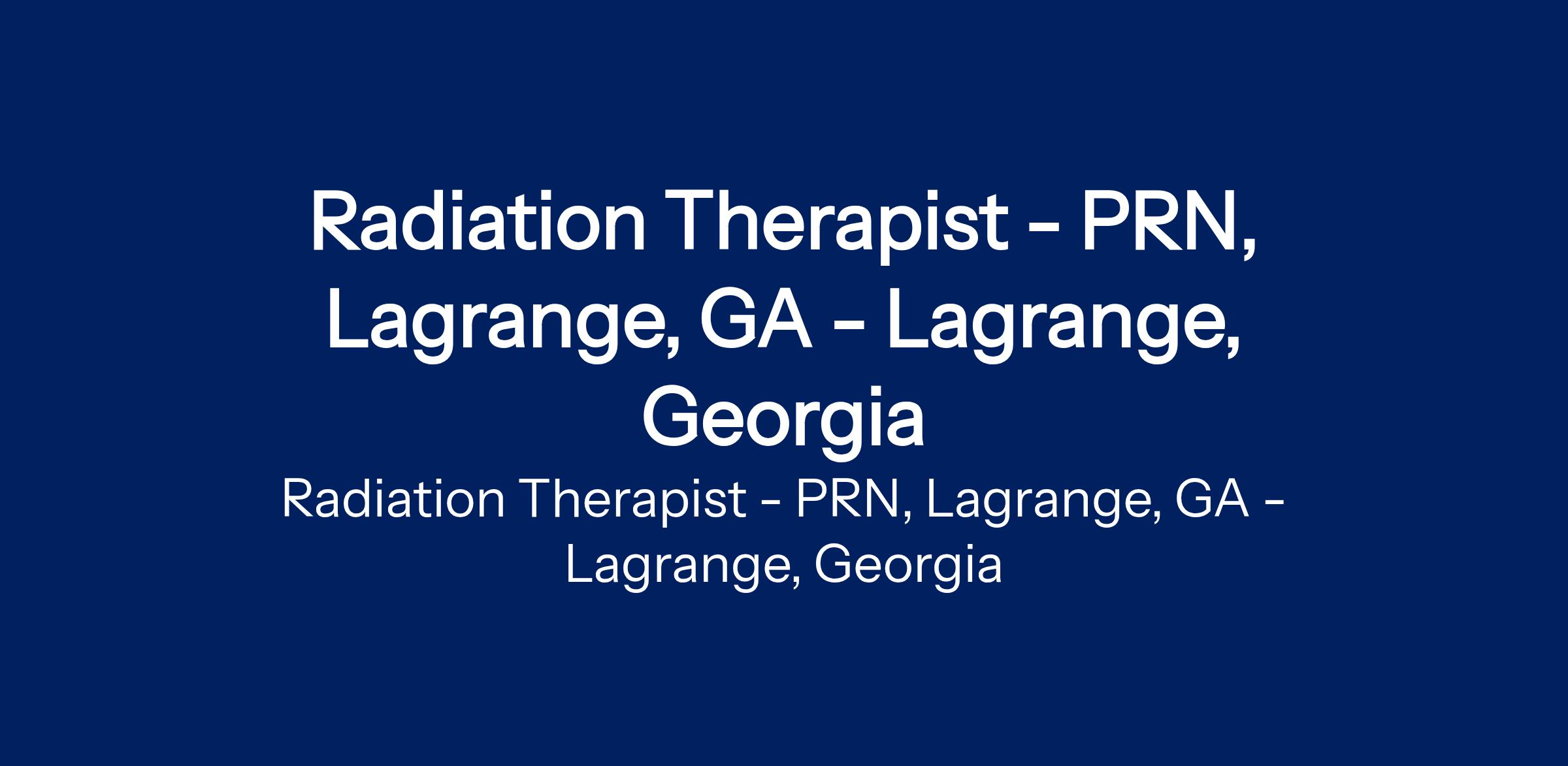 Radiation Therapist - PRN, Lagrange, GA - Lagrange, Georgia