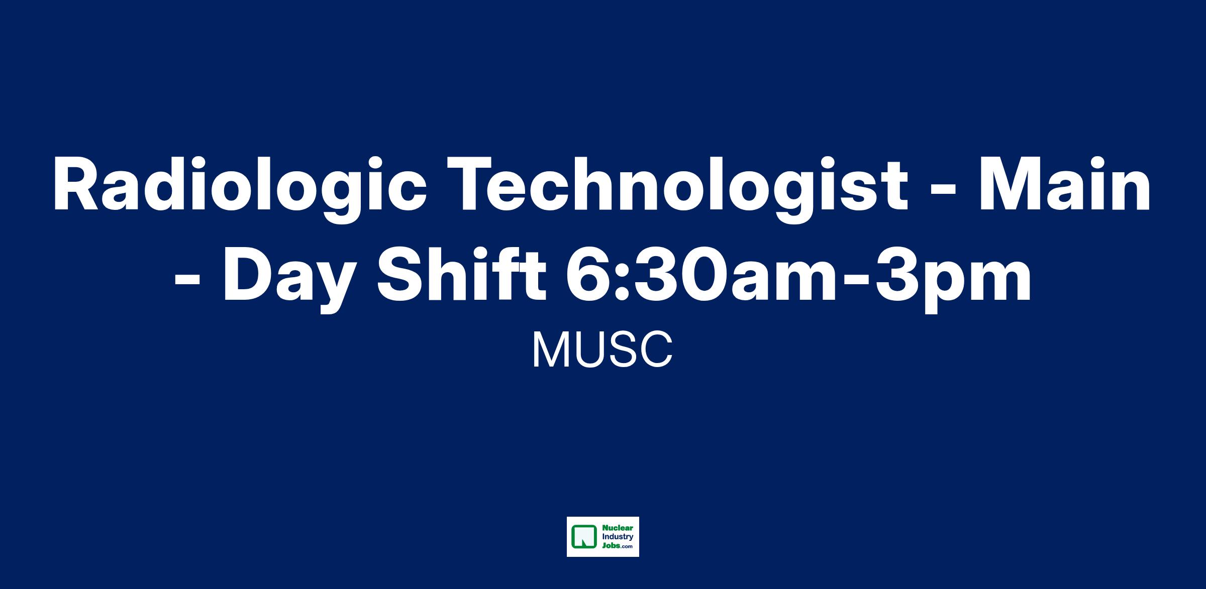 Radiologic Technologist - Main - Day Shift 6:30am-3pm