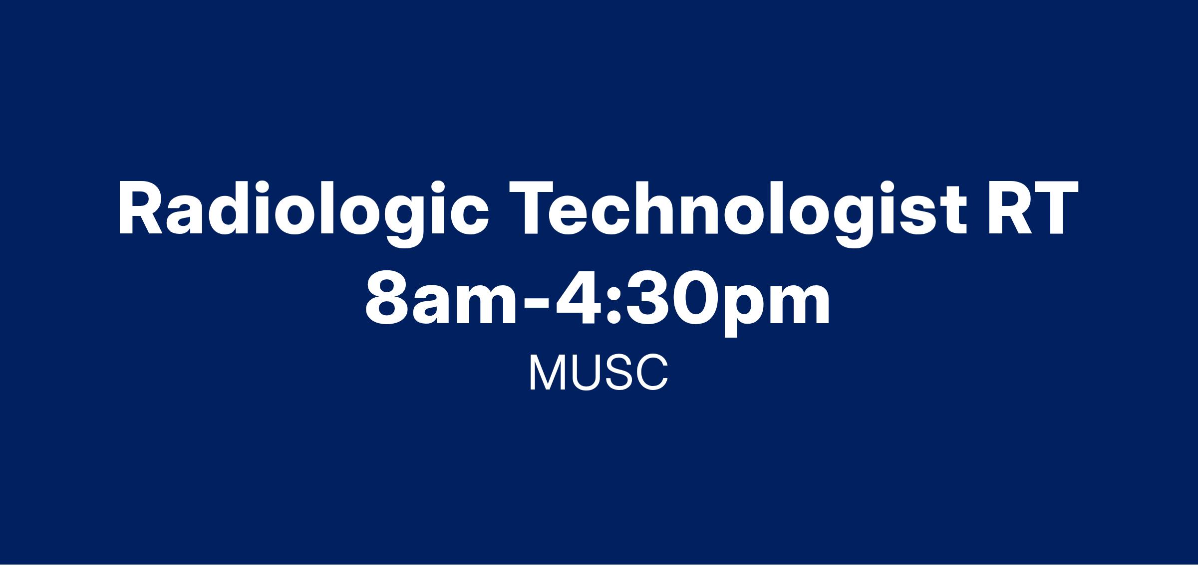 Required License Certification and Registration: Must be registered with the American Registry of Radiologic Technologists (ARRT). Licensure from the South Carolina Radiation Quality Standards Association is required. Current Basic Life Support (BLS) required, either a certification from an American Heart Association (AHA) BLS for Healthcare Providers (or AHA recognized equivalent) or an American Red Cross CPR/AED for Professional Rescuer and Healthcare Provider