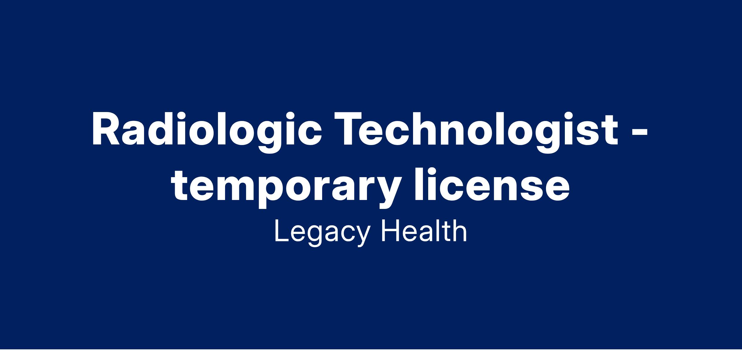 As a Radiologic Technologist, your work involves much more than performing diagnostic exams; you also ensure a positive experience by making patients feel respected and secure. If this is how you view your job, we invite you to consider a career with Legacy.