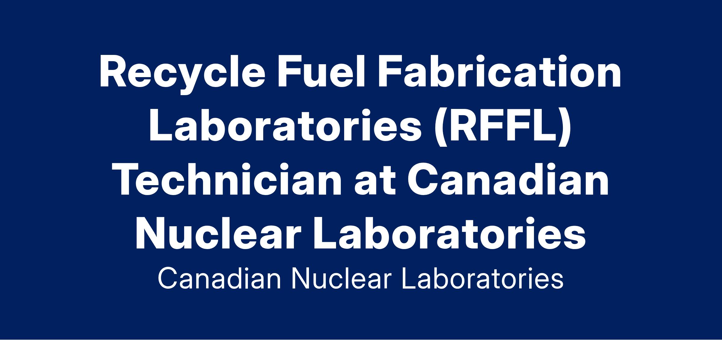 Our Chalk River location is looking for a Recycle Fuel Fabrication Laboratories (RFFL) Technician to support out Licensed Nuclear Facilities Branch. Can you see yourself in a role where you will be working with a team to support activities involving fuel fabrication technology (MOX fuel and molten salt synthesis) and actinide chemistry experiments (for example, alpha therapy)? If so, apply today!