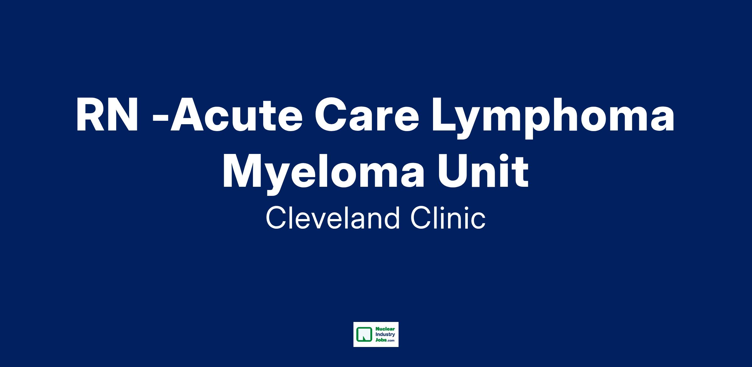 Cleveland Clinic's Taussig Cancer Center is recognized as one of the top cancer centers in the country. Join our M70/M71 Lymphoma and Myeloma units as a Registered Nurse and become a part of a supportive environment where everyone excels and is valued for what they bring to our multi-disciplinary team. On our M70/M71 Lymphoma and Myeloma units, you will be caring for adult patients that are undergoing targeted cancer and radiation therapies. You will be part of our dedicated team focusing on the diagnosing and treatment of many varied malignancies and hematologic diseases.