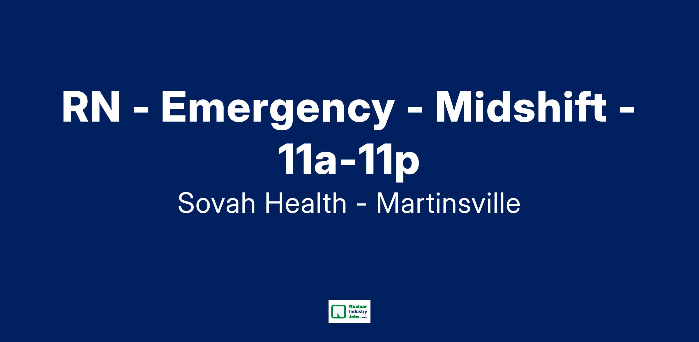Registered Nurse (RN) - Emergency Department - Full Time - Mid-shift (11a-11p) $20,000 Sign-on Bonus Eligible SOVAH Martinsville Position Summary: