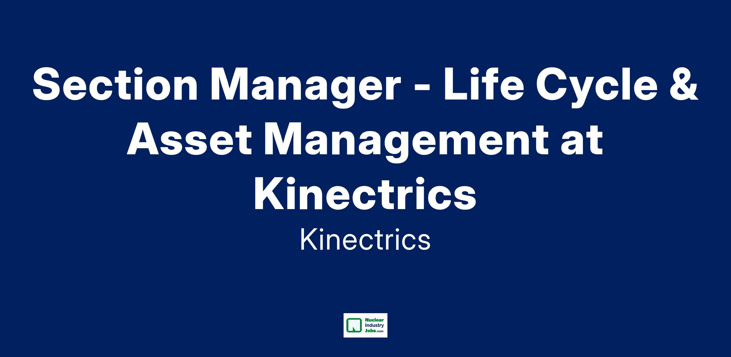 Section Manager - Life Cycle & Asset Management at Kinectrics