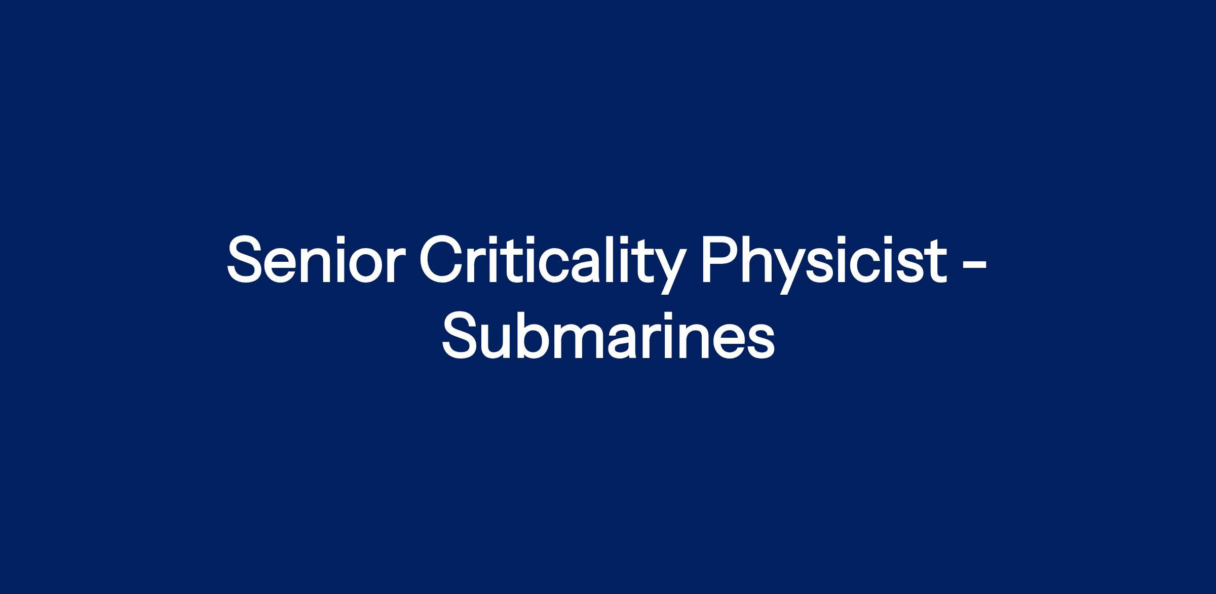 Job Title: Senior Criticality Physicist - Submarines