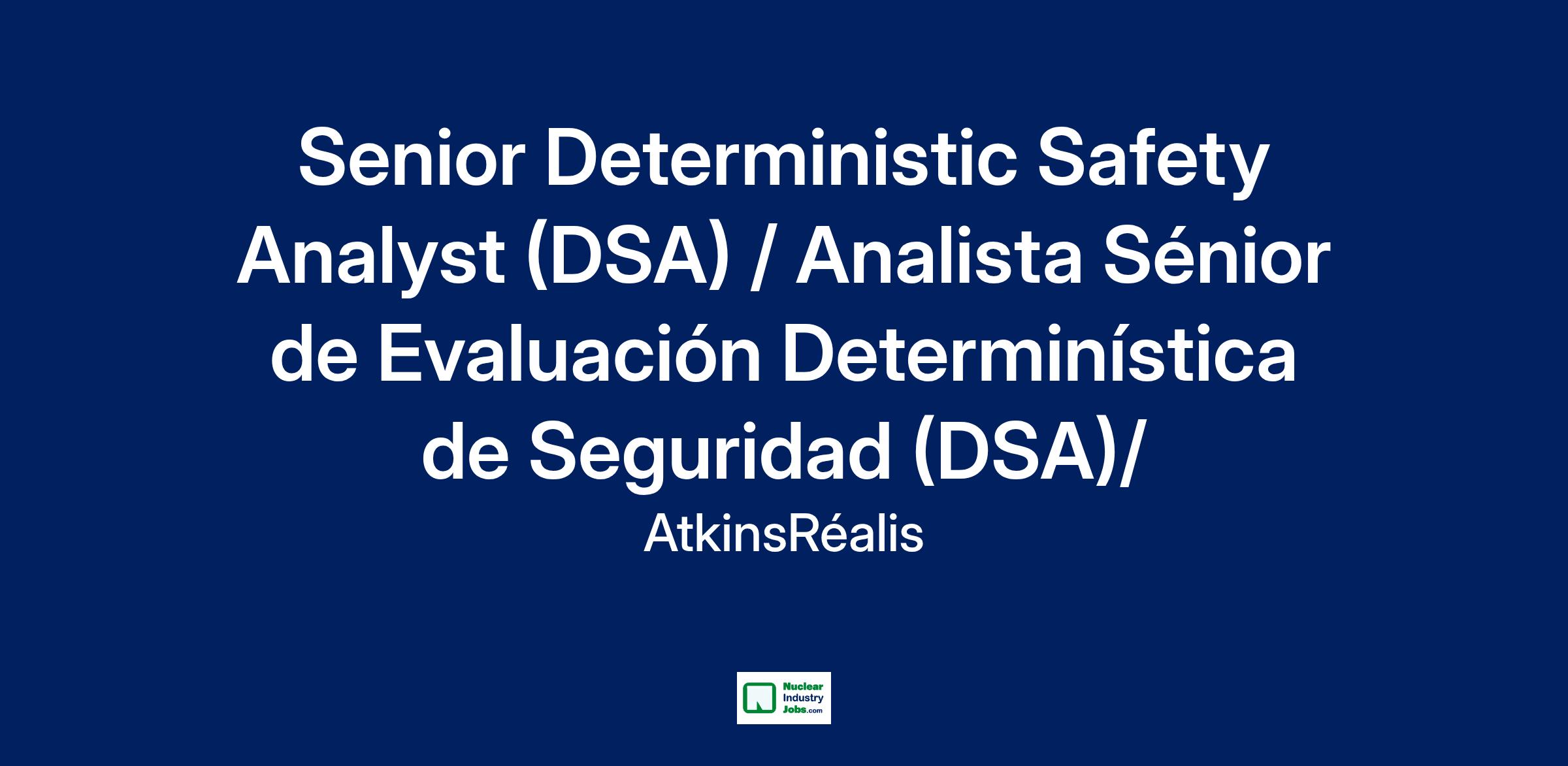 AtkinsRéalis is looking for Senior Deterministic Safety Analyst(s) (DSA) to be a part of our team in supporting the design of new nuclear power plants and the operation and refurbishment of existing CANDU nuclear power plants.
