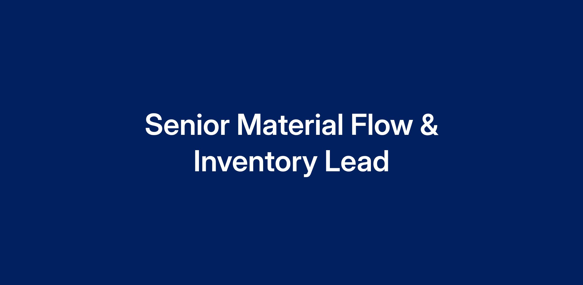 Title: Senior Manager, Material Flow & Inventory Lead