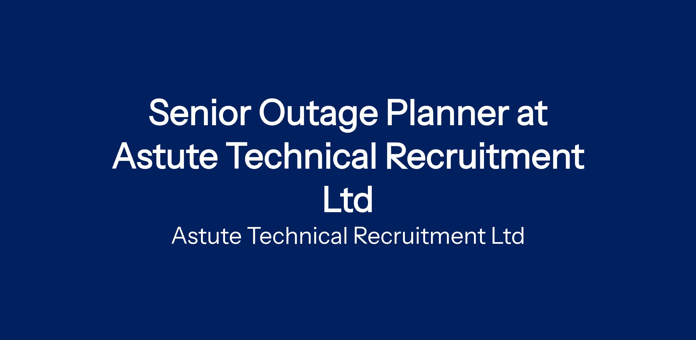 Astutes Power Team are recruiting for a Senior Outage Planner to support a fleet of Biomass and Energy from Waste Power Stations across the United Kingdom.