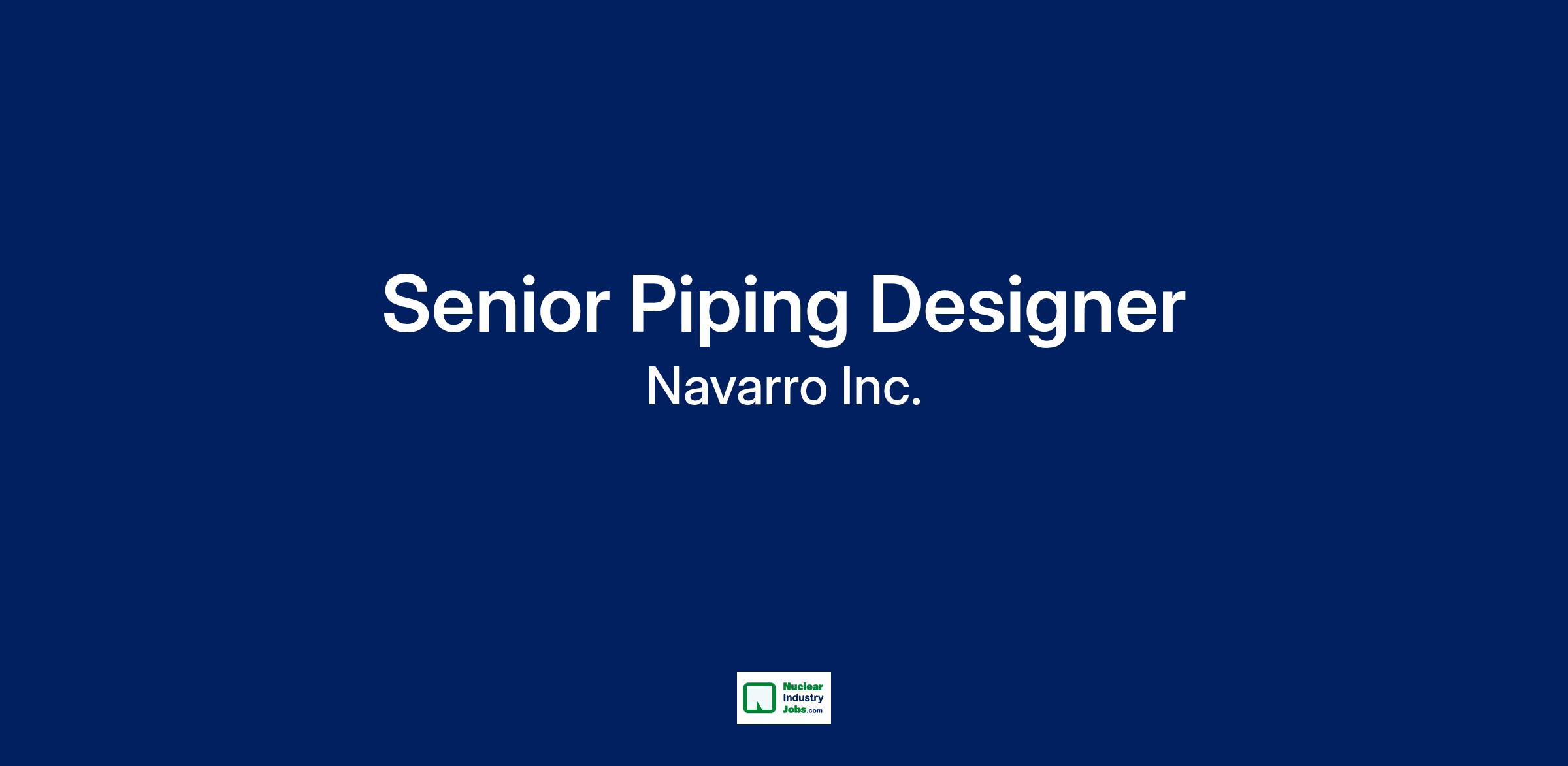 Navarro Research and Engineering is recruiting a Senior Piping Designer in Greenville, SC.