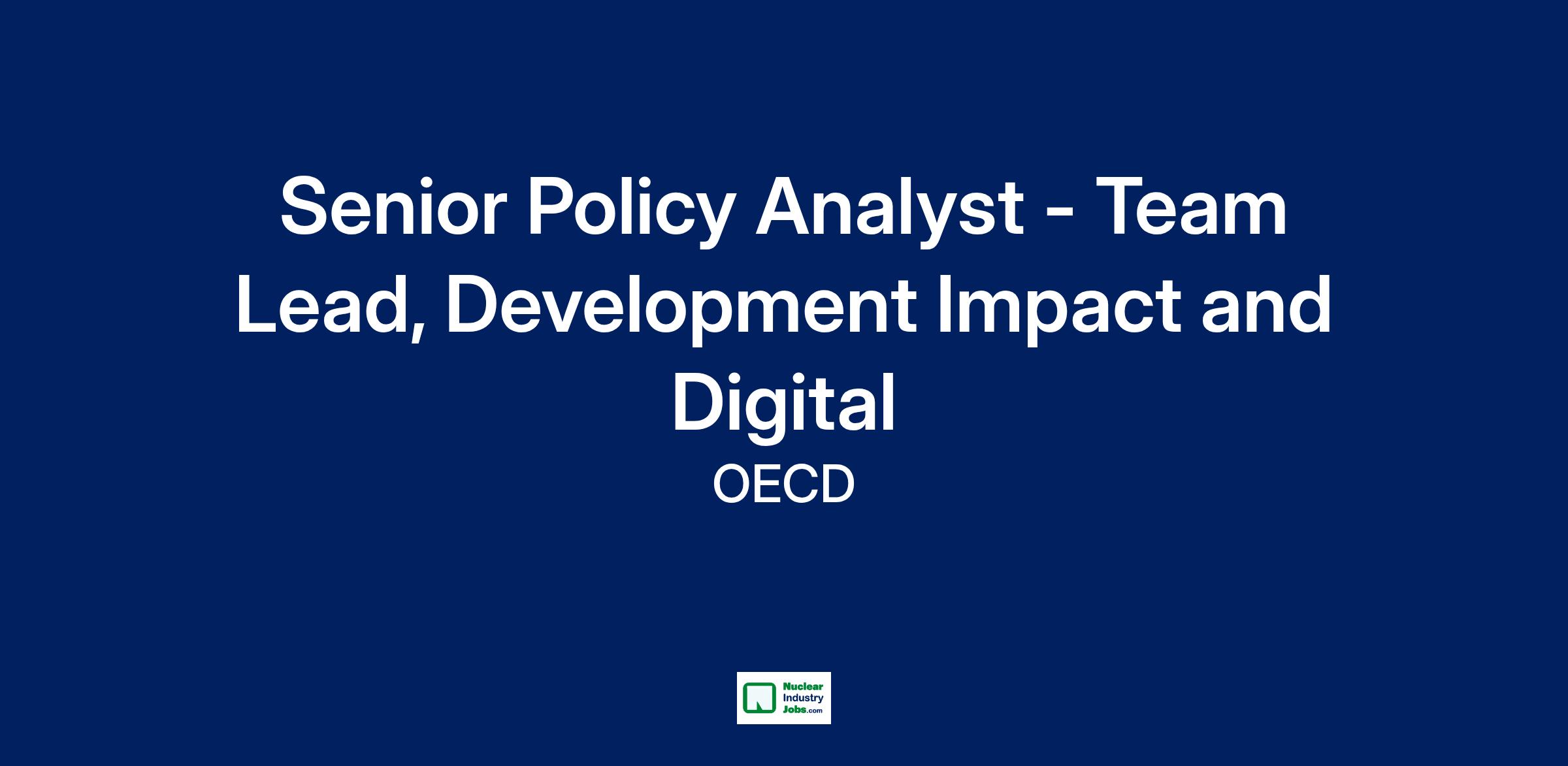 DCD is looking for a Senior Policy Analyst / Team Lead for Development Impact and Digital. This is a new role, overseeing several existing and emerging initiatives within RPDI with an emphasis on partnering with Member and non-Member development co-operation agencies to improve their impact. The position includes oversight of activities related to system-wide reforms, including: on-demand support to governments in strengthening their institutions, policies and processes to maximise development impact; work on and with emerging donors;; and new initiatives to support development co-operation agencies in the area of digital technologies (e.g. investment in digital public infrastructure; developing a new workstream on Artificial Intelligence (AI) for effective development co-operation).
