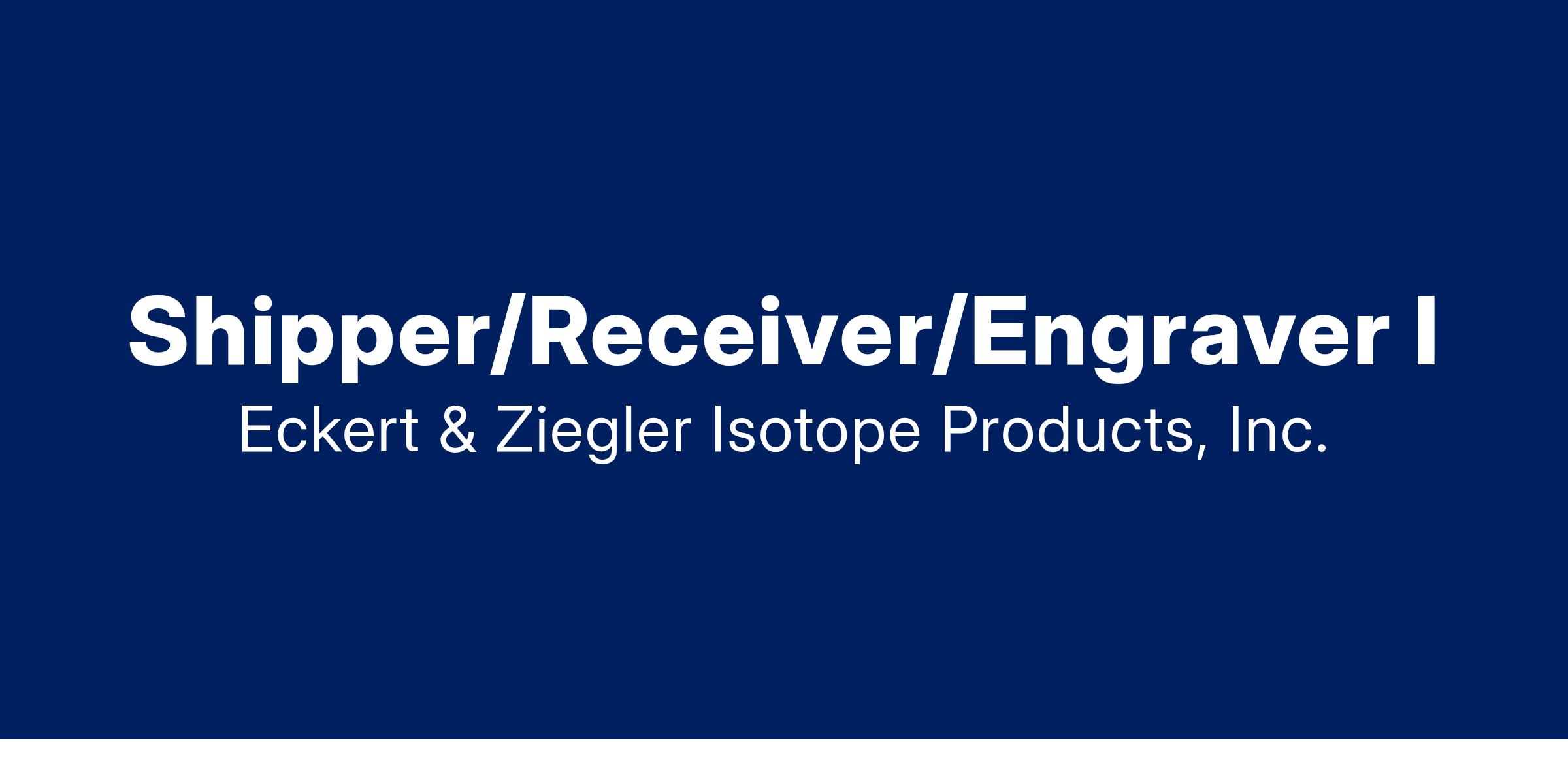 Eckert & Ziegler Isotope Products seeks a Shipper / Receiver / Engraver I to join our team. This position is responsible for packaging hazardous material shipments according to 49CFR and IATA regulations. Receives incoming material and distributes the items to proper personnel. Also responsible for all other regular shipping and receiving duties as assigned by the Shipping Lead or Supervisor.