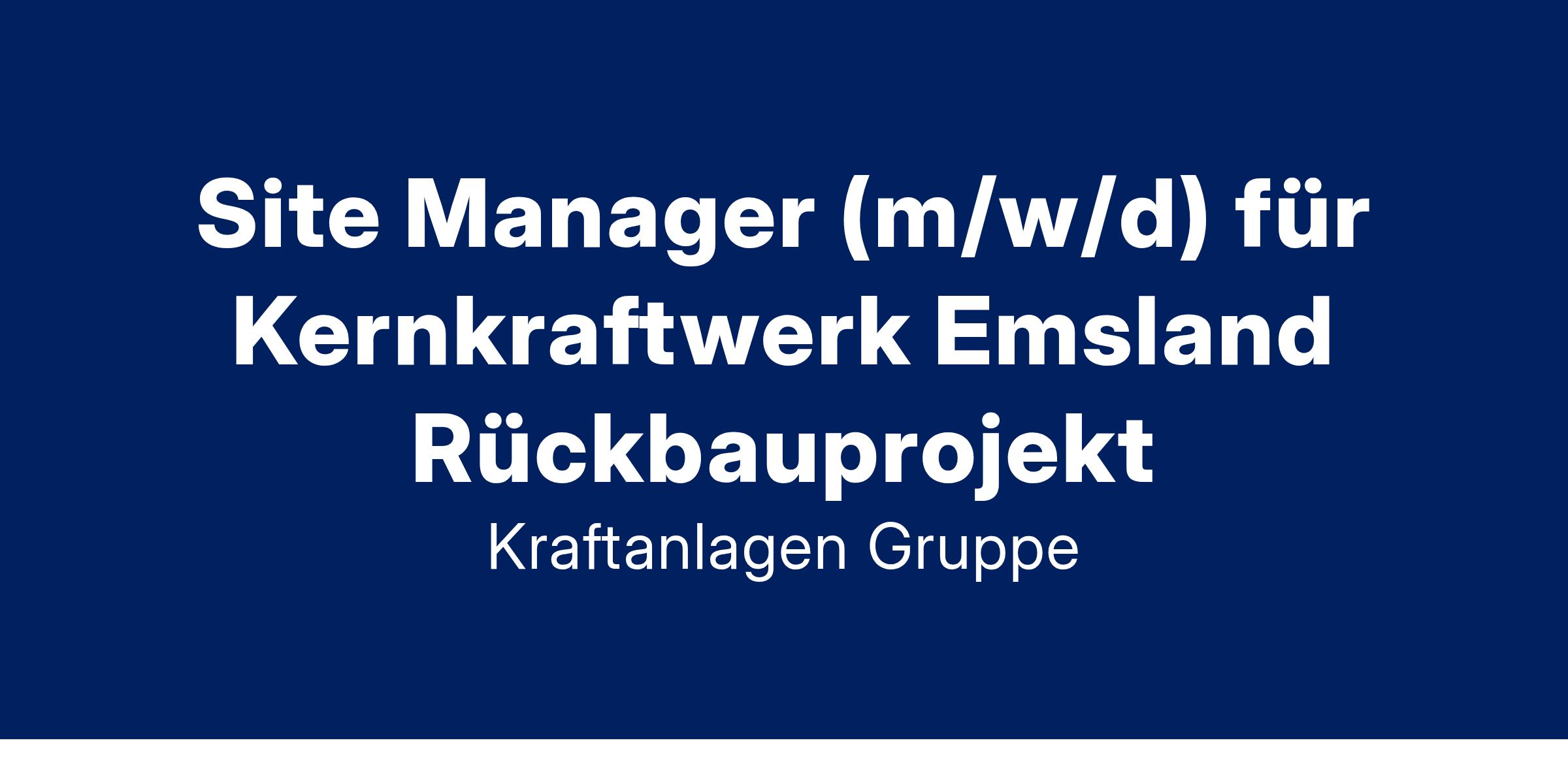 Als Verstärkung für den Standort Emsland suchen wir einen Site Manager (m/w/d) für das Rückbauproject im Kernkraftwerk Emsland (das Kraftwerk wurde im April 2023 vom Netz genommen). Der Rückbau ist im Zeitraum 2024-2025 vorgesehen.
