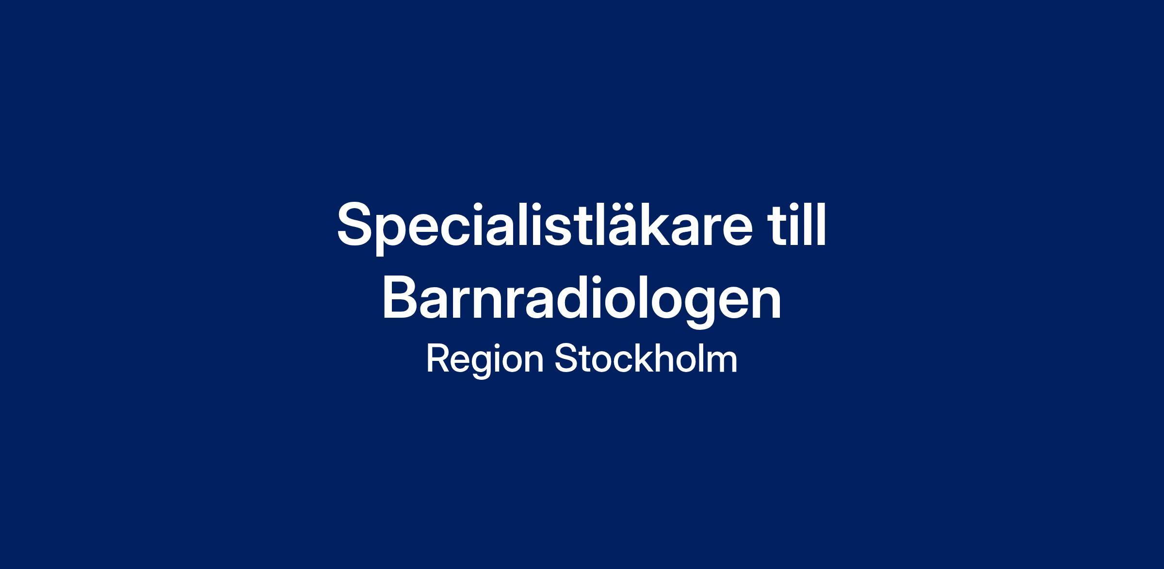 Vi söker dig som vill vara med och utveckla barnradiologin i Stockholm. Vi har ett generationsskifte på gång och behöver därför hitta just Dig som är intresserad av att vara med på vår resa.