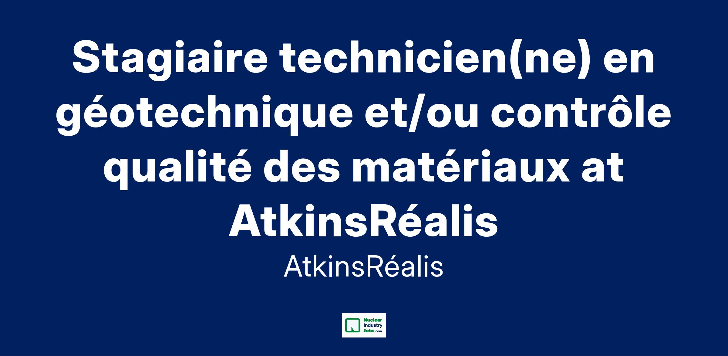 Stagiaire technicien(ne) en géotechnique et/ou contrôle qualité des matériaux