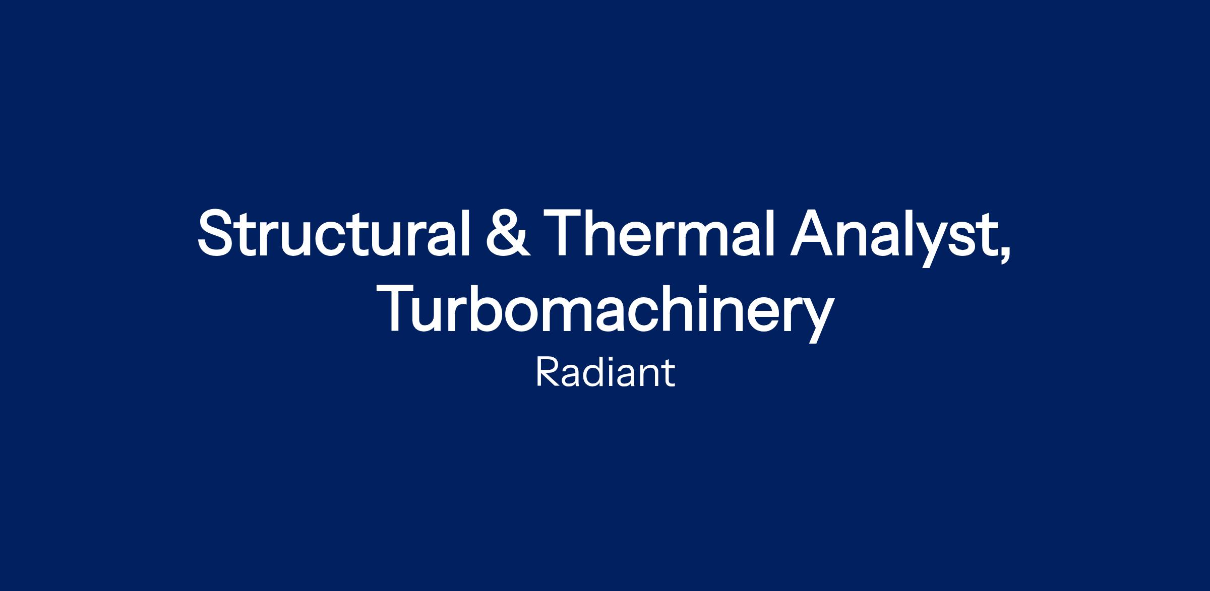 We’re looking for a Structural & Thermal Analyst, Turbomachinery to take ownership of the structural, thermal, and mechanical performance of high-speed rotating machinery, including compressors, turbines, and pumps in our power generation and primary cooling systems.