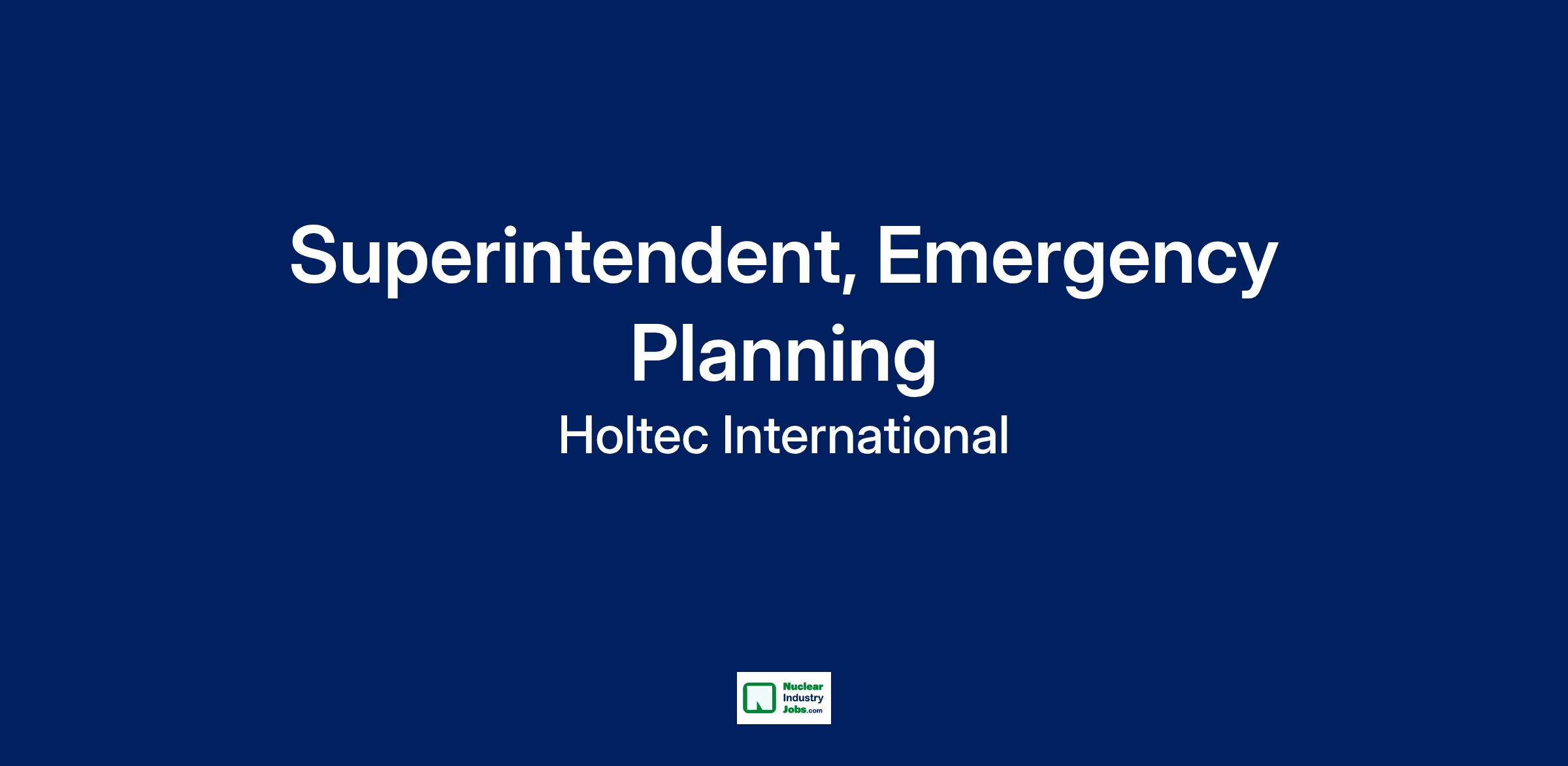 Position: Superintendent, Emergency Planning       Location: Palisades EnergyHoltec Palisades seeks qualified applicants for the position of Superintendent, Emergency Planning in its Emergency Planning department based at Palisades Nuclear Power Plant in Covert, MI.Palisades is positioned to become the first nuclear power plant in the United States to restart after previously entering the early stages of decommissioning. By joining our team, you will be part of a unique and historic undertaking for the nuclear industry and the nation!Job Summary:Responsible for the development and administration of emergency preparedness at a nuclear plant to protect the health and safety of the public and plant employees.Key Responsibilities:- Maintain and revise Emergency response plans and procedures.