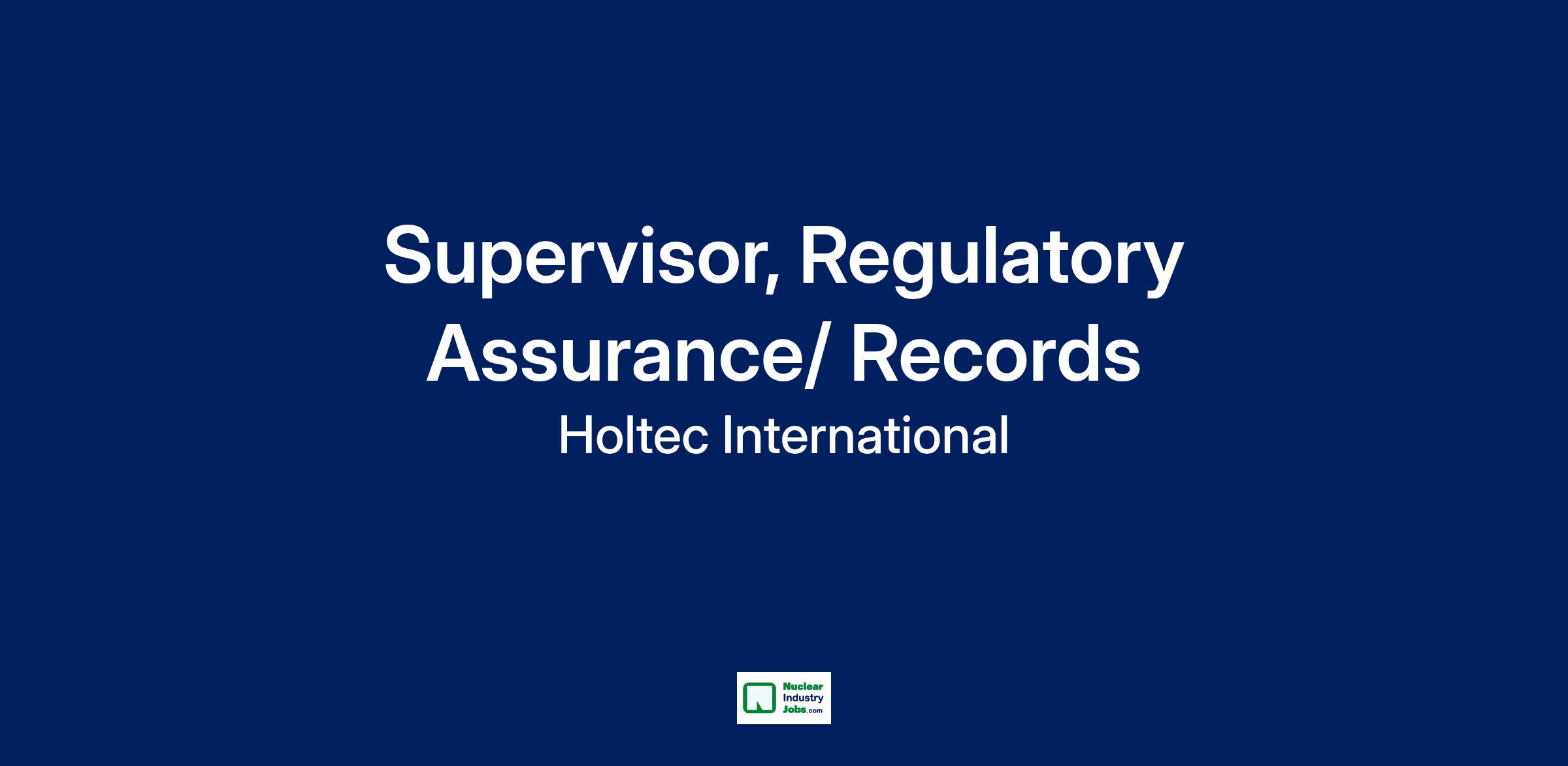 Position: Supervisor, Regulatory Assurance/ RecordsLocation: Palisades EnergyHoltec Palisades seeks qualified applicants for the position of Supervisor, Regulatory Assurance/ Records in its Regulatory Assurance department based at Palisades Nuclear Power Plant in Covert, MI.Palisades is positioned to become the first nuclear power plant in the United States to restart after previously entering the early stages of decommissioning. By joining our team, you will be part of a unique and historic undertaking for the nuclear industry and the nation!Job Summary:Responsible for ensuring regulatory inspection readiness, executing responsibilities under the Reactor Oversight Process (ROP), and compliance with records management requirements.  Key Responsibilities: - Interface with regulatory and industry representatives regarding regulatory compliance activities.