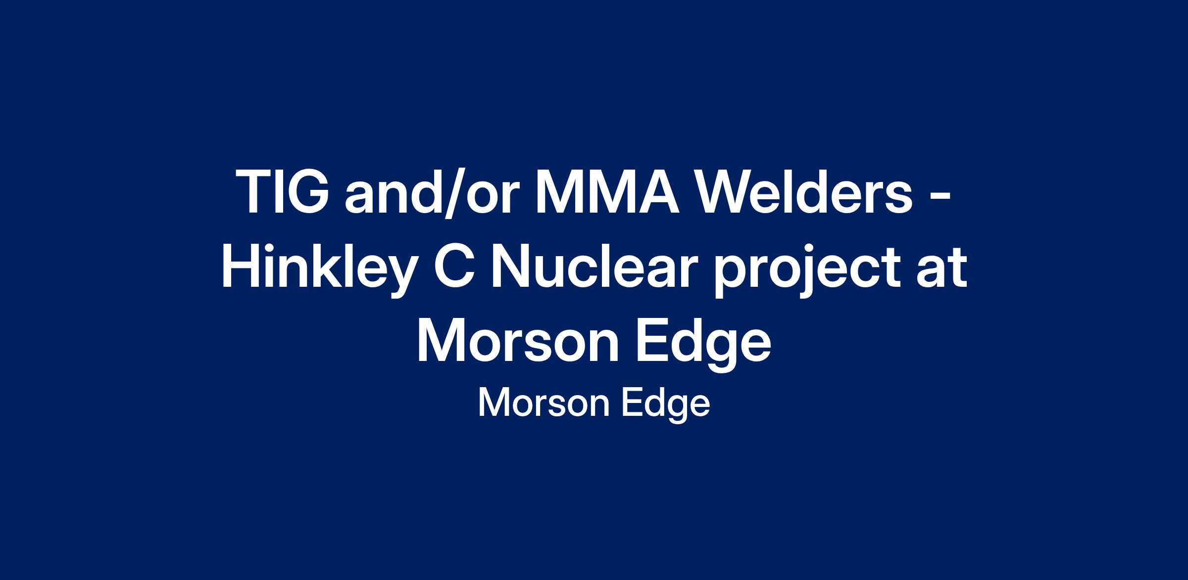 Morson Talent currently have excellent opportunities for TIG and/or MMA Welders with heavy industry (e.g. oil and gas, petrochemical, power, nuclear, marine, refinery, chemical, etc) experience to join our client's existing site team at Hinkley Point 'C' on a permanent basis. Due to the amount of work needing to be undertaken, candidates skilled and experienced in just TIG or MMA will be happily accepted, though experience (and the ability to pass a trades test) in both would be advantageous.