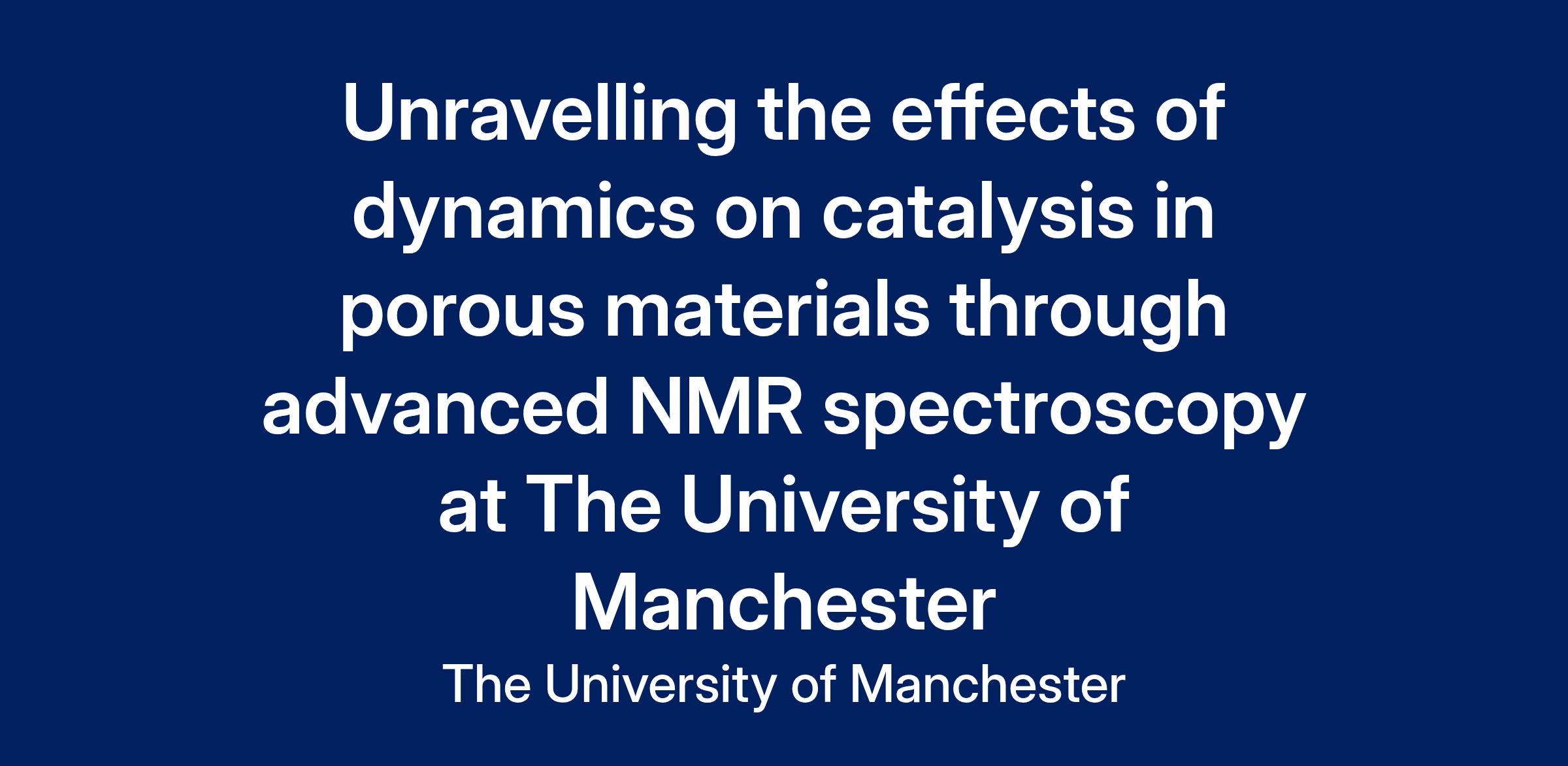 The student will have access to world-leading NMR facilities at The University of Manchester, including the EPSRC- and University-funded 700 MHz solid/solution NMR spectrometer and the UK Dynamic Nuclear Polarisation (DNP) MAS NMR Facility. These resources enable high-sensitivity, high-resolution NMR measurements of porous solids and adsorbed molecules. The project will also benefit from close links to complementary techniques, including neutron scattering and advanced computational modelling, providing a rich, multidisciplinary research environment.