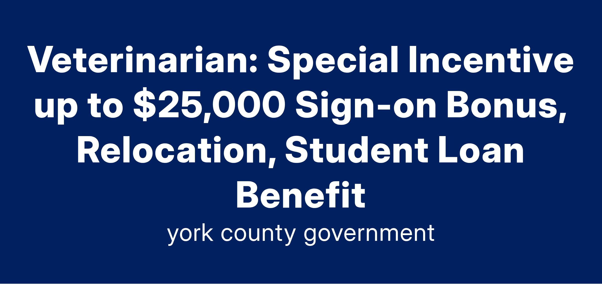 - Full-Time Vet Position: $25,000 half paid upon hire and half paid after one (1)-year service and a satisfactory completion of new hire probation period.